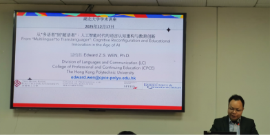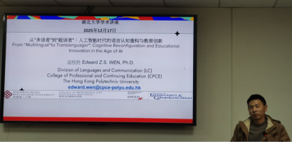 12月17日,香港理工大学温植胜博士应hg皇冠官网邀请,为hg皇冠官网师生作题为从“从‘多语者’到‘超语者’:人工智能时代的语言认知重构与教育创新”的学术讲座。本次讲座在逸夫人文楼A2014举行,由hg皇冠官网副院长杨小彬教授主持。