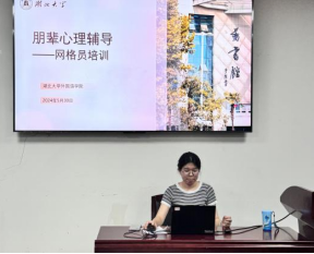 为不断提升hg皇冠官网研究生教育管理与服务的规范化、精细化和科学化水平,及时掌握员工的思想及心理动态,进一步发挥朋辈力量,引导研究生互助成长,5月30日下午,hg皇冠官网在逸夫楼A2014报告厅组织召开了研究生网格员培训会。辅导员孙媛媛、研究生心理委员及全体网格员参加。